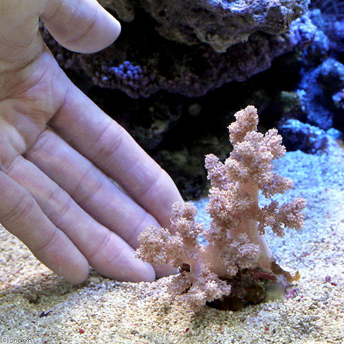 | 飼育のコツ | 他のトサカ類に比べ水質に敏感な面があるので、水が汚れないように気を配る必要があります。 照明はソフトコーラルとしては強めの光を好みます。弱光でも育成はできますが細く間延びした姿になってしまうので、しっかりとした美しい姿に育てるにはやはり強い光を照射する必要があります。 調子が良くなかったり環境が合わない場合はうな垂れたような姿になってしまうので、うまく開かない場合は各要素をしっかりと確認することが大切です。 |