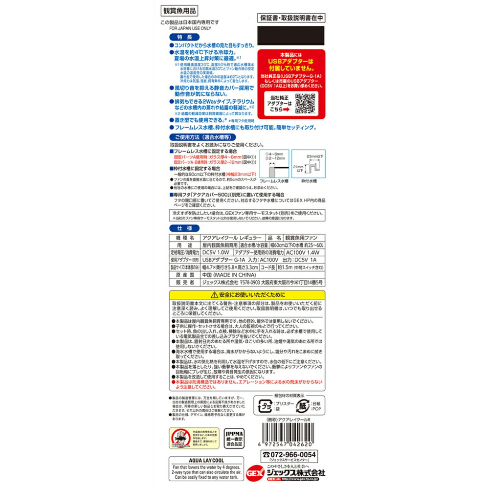 GEX アクアレイクール レギュラー 25~60L水槽 USB 冷却ファン クーラー