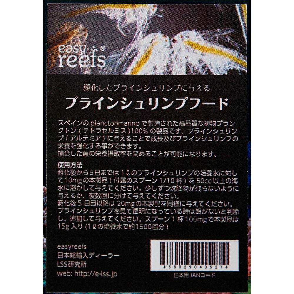 | Easy reef ブラインシュリンプ 生育・栄養強化フード 15g | |