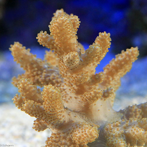 | 飼育のポイント | 丈夫なトサカ類であり、光及び水流が強めの環境を好み、きちんとライブロックに固定してあげるのがポイントです。 光が弱すぎると茎が真っ直ぐ立たず、水流が弱るぎるとポリプを出さない場合が多いです。 また、低栄養塩の清浄な水質を好みますので、濾過のしっかりと効いた水槽での飼育が理想です。 |
