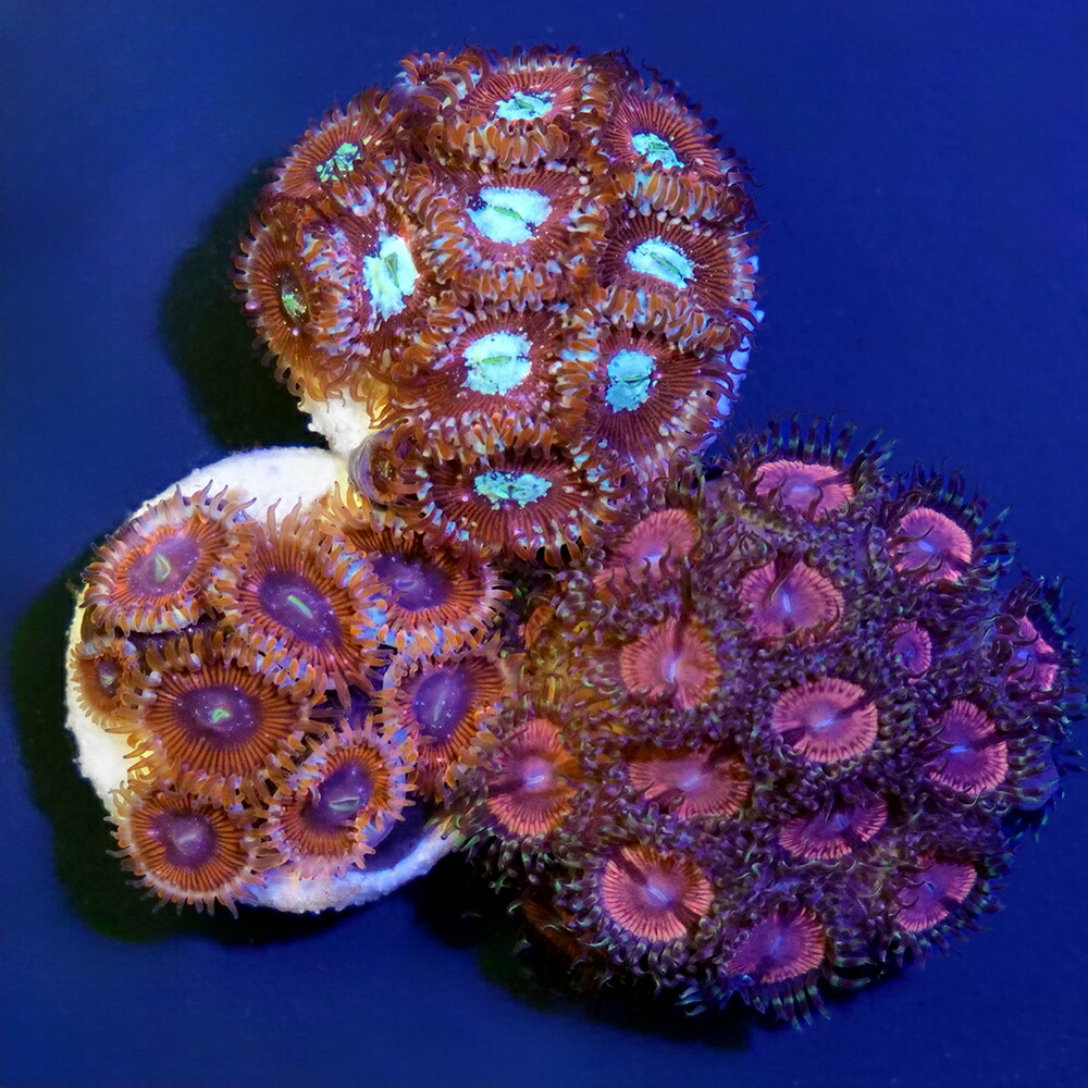 | 種類詳細 | イソギンチャクに近い種類のソフトコーラルで4~8mmのポリプが浅い海の岩の上にマット状の共肉でつながった大きな群体をつくります。 カラーバリエーションが豊富でグリーン、オレンジ、ピンク、レッドなどがありポリプの中心部に色が付いているものもあります。 今回は数あるカラーの中からレッド系の個体を選別しました! 丈夫ですのでサンゴ入門におすすめの種類で光・水流・水質ともに最低限の設備で飼育可能ですが環境を整えてあげると色はよく揚がり増殖するスピードも早くなります。 給餌は基本的に不要ですが与える場合は液体もしくは粉末状のものを週に1度程度吹きかけてあげると良いでしょう。 |