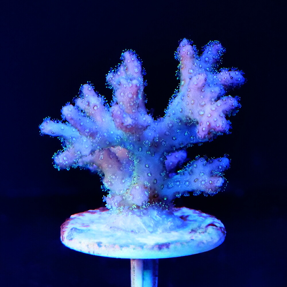 | 種類詳細 | 表面がゴツゴツとした太く頑丈な枝を持ち、形状がカリフラワーのように見えるサンゴ。 色彩もグリーン、ピンク、イエロー、パープルなど綺麗なものが多いです。 ミドリイシと同じく、かなり強い照明を好むのでメタハラの直下の温度が上がらない場所に置くのがベストです。 特にピンクなどの色彩を維持するにはメタハラは欠かせません。 硝酸塩の蓄積には非常に弱いため、強めの水流を好みますがダイレクトに当たらないように気を付けてください。 また、カルシウムをはじめとした微量元素、KH、pHの値にも敏感で成長を妨げる栄養塩も低く抑える必要があります。 |