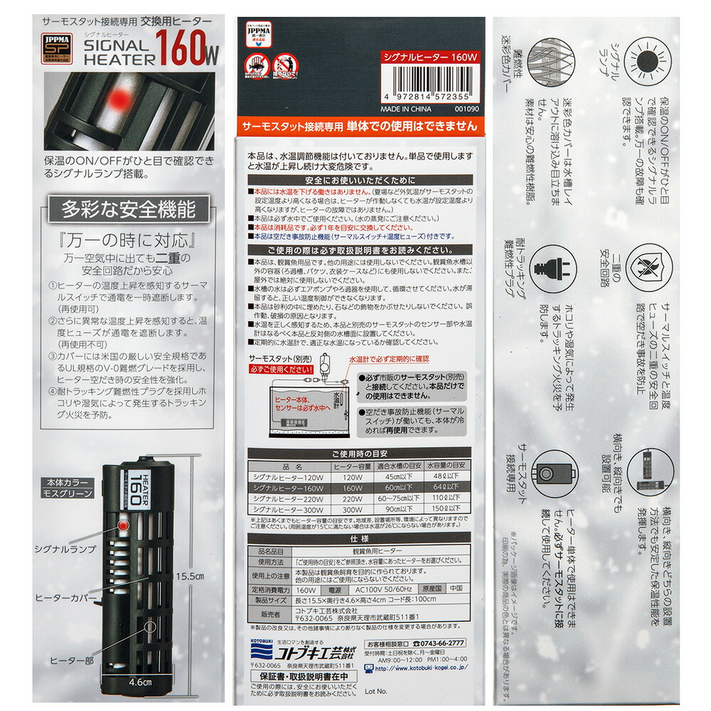 コトブキ工芸 シグナルヒーター 160W ~45cm水槽用 交換用ヒーター アクアリウム 熱帯魚