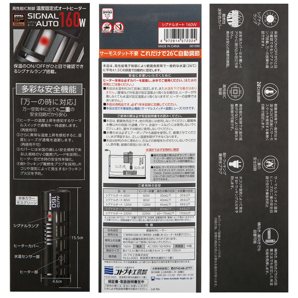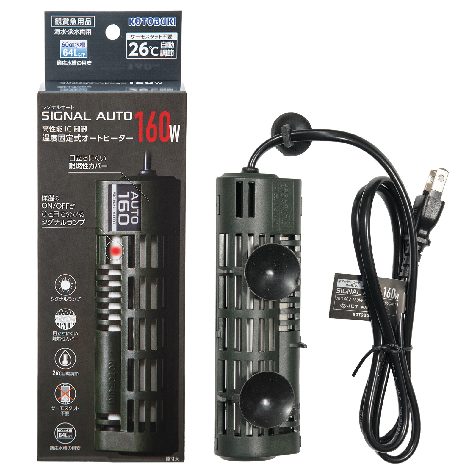 コトブキ工芸 シグナルオート 160W 25~27℃固定式 ~60cm水槽用 オートヒーター アクアリウム 熱帯魚