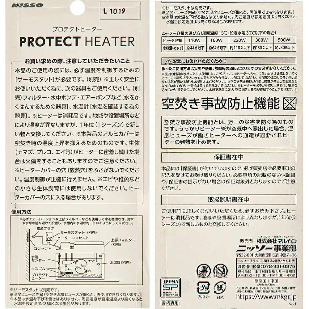 | セット内容 | ニッソー シーパレックス 600NEO×1個 ニッソー プロテクトヒーター R-300W×2本 |