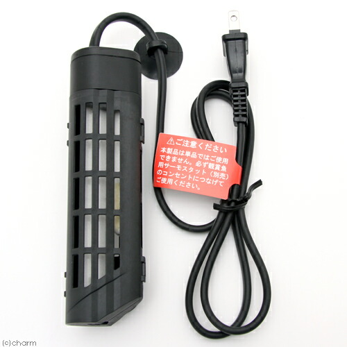 | ご使用方法 | ●取扱説明書の図を参考にセットしてください。 ●水温の管理には、必ず水温計を併用してチェックしてください。 ●エアレーション又は、ろ過装置を使用し水槽内の水が撹拌されている状態の水槽で使用して下さい。 ●ヒーターカバーは必ず装着した状態で使用して下さい。 ●適合水槽サイズは周囲温度が15℃以上の環境の場合です。15℃に満たない場合は希望水温にならない場合がありますので注意して下さい。 |