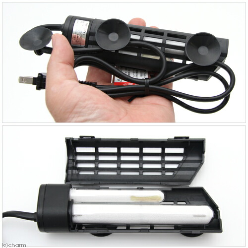 | ご注意 | ※本製品は屋内観賞魚飼育専用です。他の目的には使用しないでください。 ※本製品には水温を下げる能力はありません。 ※子供には操作・セットさせないでください。操作させる時は大人の監視のもとで行って下さい。 ※セット時、魚の出し入れ、点検、掃除など水中に手を入れる時は、必ず水槽で使用している電気製品全ての差し込みプラグを抜いてください。 ※本製品は直射日光の当たる場所や、湿気、ほこりの多い場所、油煙や湯気が当たる場所では使用しないでください。 |