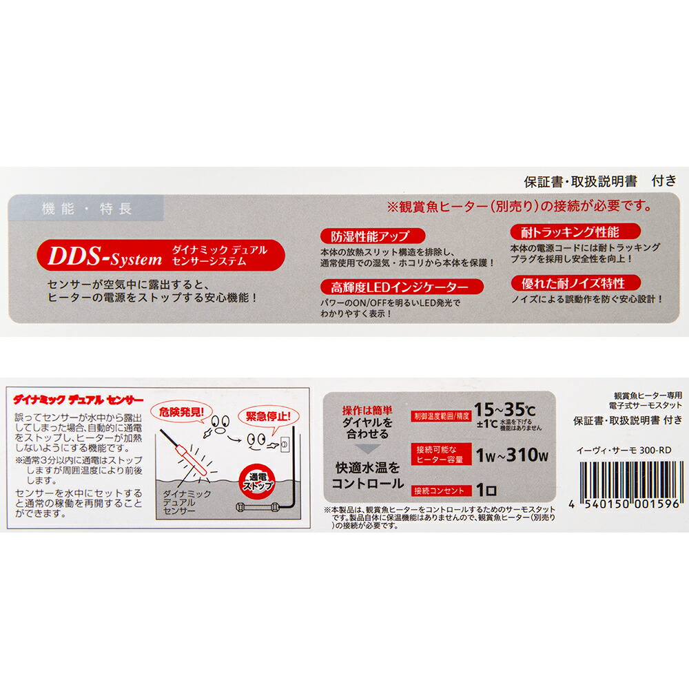 | 対象 | 観賞魚用ヒーター(1W~310W) |