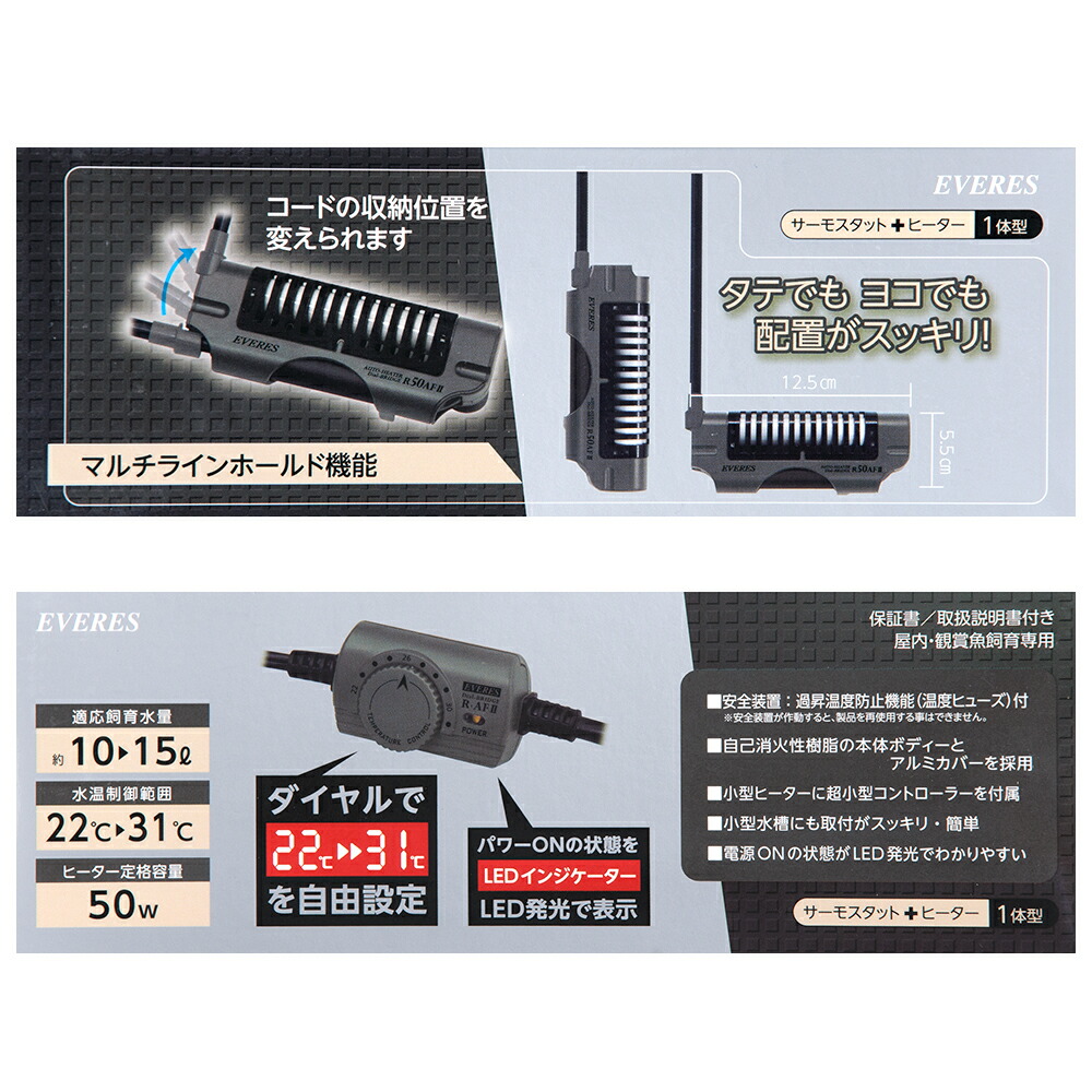 エヴァリス オートヒーター ダイヤルブリッジR 50AF II サーモ一体型ヒーター 水槽 アクアリウム 熱帯魚