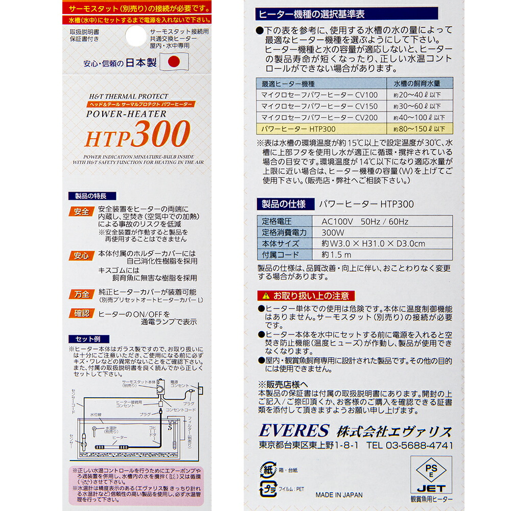 | 対象 | 【エヴァリス サーマルプロテクト パワーヒーターHTP300】 淡水・海水両用、水量約80~150Lの水槽 |