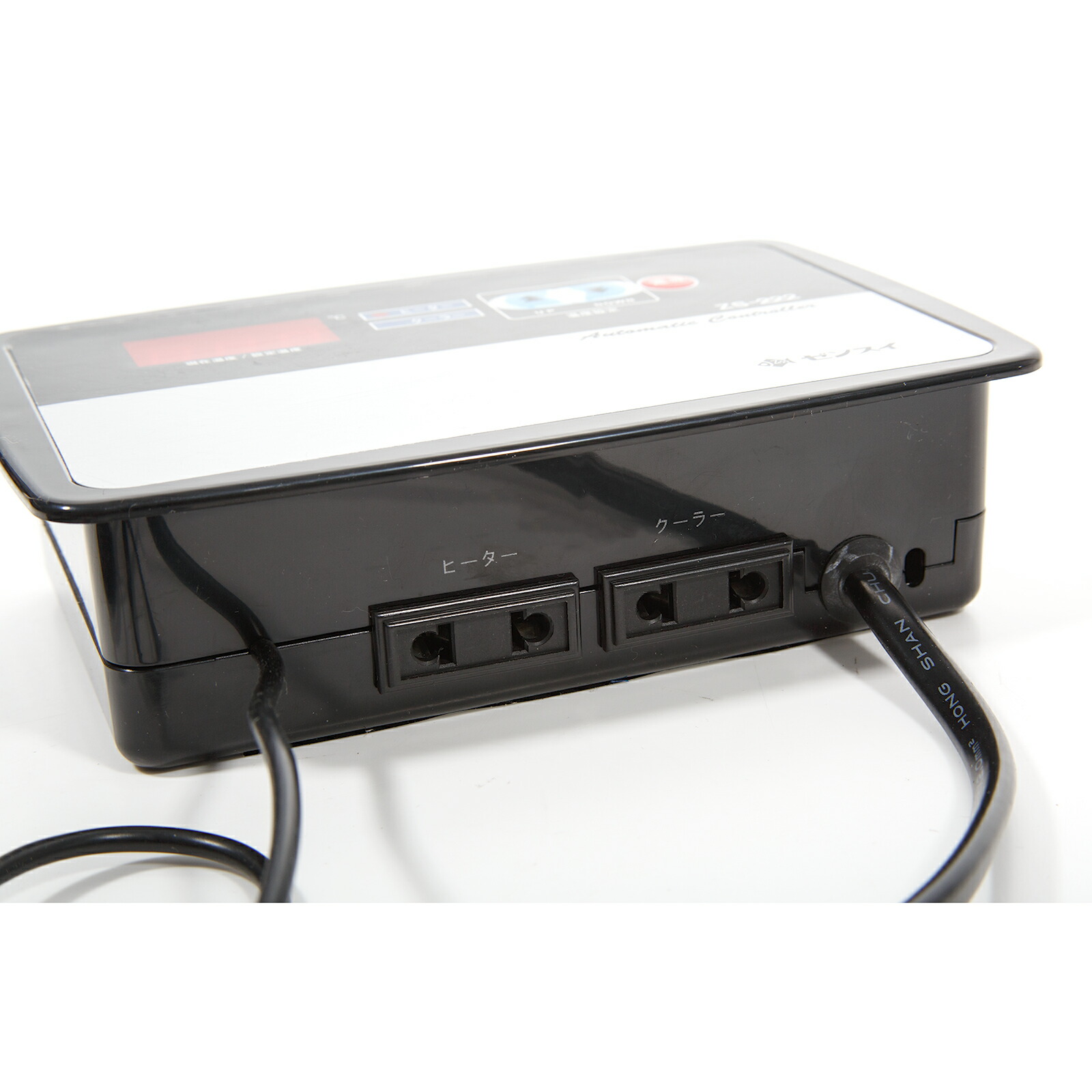| 仕様 | ●電圧 50/60Hz:単相200V ●使用可能クーラー:750W以内 ●使用可能ヒーター:2KW以内(※タコ足配線での使用できません) ●電源コード:285cm ●温度設定範囲:0~45℃ ●温度設定単位:±0.1℃ ●センサー温度感知単位:±0.1℃ |