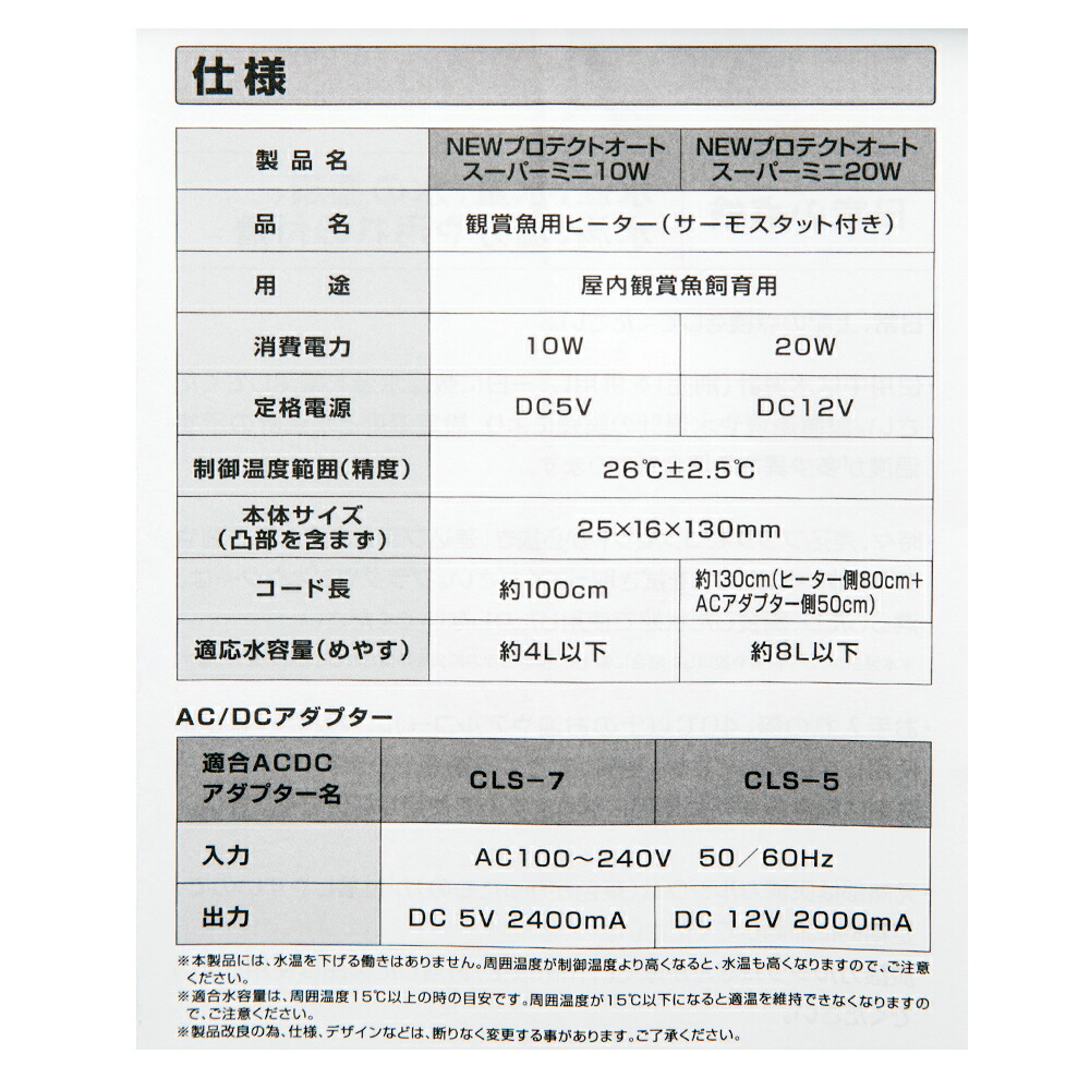 | ニッソー NEWプロテクトオート スーパーミニ 20W | |