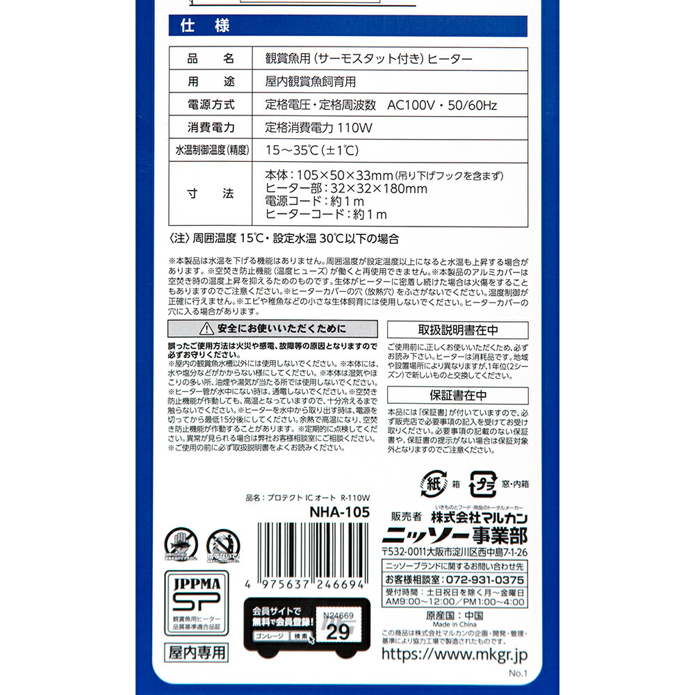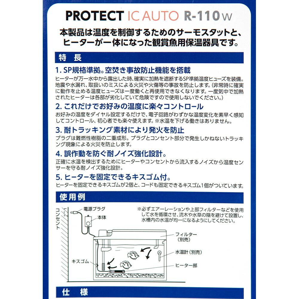 ニッソー プロテクトICオート R-110W サーモスタット一体型 ~44L以下水槽用 アクアリウム ヒーター 熱帯魚