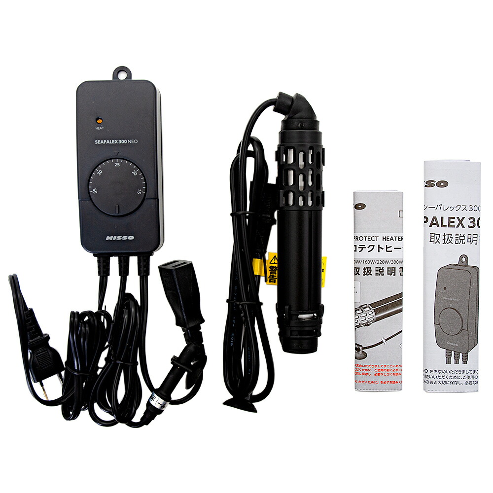 | 仕様 | 【サーモスタット(シーパレックス300 NEO)】 定格電圧:AC100V 定格周波数:50Hz/60Hz 接続可能ヒーター容量:1~300W 制御温度範囲:15~35℃ 精度:±0.5℃ 【ヒーター(プロテクトヒーターR-110W)】 定格電圧:AC100V 定格周波数:50Hz/60Hz 定格消費電力:110W |