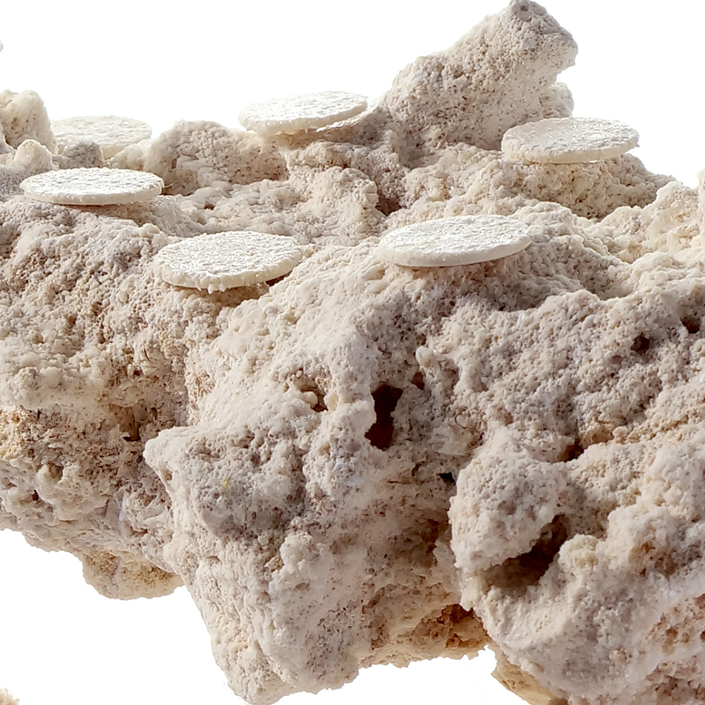 | 特長 | ◆マルコロックとは?◆ ●フロリダ半島の陸地で採掘された、クリーンで上質なアラゴナイト石灰岩です。 ●一般的な石灰岩と比べて空隙が多く、多孔質な構造を保っています。 ●従来のライブロックのようなウミケムシやシャコ、カニなど予期せぬ生物の持ち込みがありません。 ●マルコロック同士で接着することにより、自由なレイアウトを楽しむことができます。 【カスタムフラグベース】 ●マルコロックを素材として組み上げたフラグベースロックです。 ●石材用シアノアクリレート系接着剤を使用し、強固に接着されています。 ●専用のポリカーボネート製サンドコーティングプラグがセットされています。 ●ロック内にサンドコーティングプラグ固定用のシリコン注入済み。プラグの抜き差しが容易に行えます。 ●マルコロックを接着することで、形状をさらにカスタムすることも可能です。 【サンドコーティングプラグ】 ●従来のプレート部の厚みによる不自然な段差を解消する超薄型フラットプレートを採用しました。 ●ライブロックやマルコロックの自然な穴を利用できるピンワークストッパー仕様です。 ●プラグ本体は割れたり折れたりしにくいポリカーボネイト製です。 ●プレート表面をマルコロックと同じパウダーサンドでコーティングしたことにより、サンゴの接着性とベースとの一体感を高めています。 |