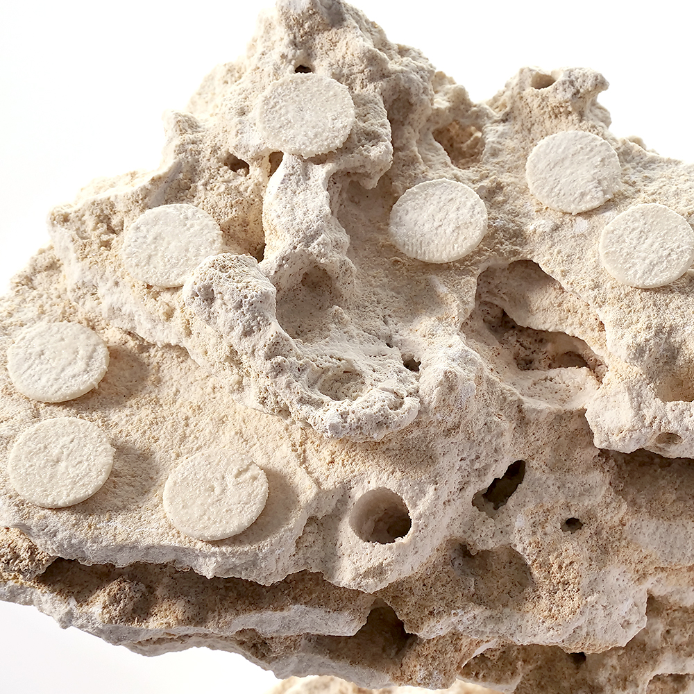 | 特長 | ◆マルコロックとは?◆ ●フロリダ半島の陸地で採掘された、クリーンで上質なアラゴナイト石灰岩です。 ●一般的な石灰岩と比べて空隙が多く、多孔質な構造を保っています。 ●従来のライブロックのようなウミケムシやシャコ、カニなど予期せぬ生物の持ち込みがありません。 ●マルコロック同士で接着することにより、自由なレイアウトを楽しむことができます。 【カスタムフラグベース】 ●マルコロックを素材として組み上げたフラグベースロックです。 ●石材用シアノアクリレート系接着剤を使用し、強固に接着されています。 ●専用のポリカーボネート製サンドコーティングプラグがセットされています。 ●ロック内にサンドコーティングプラグ固定用のシリコン注入済み。プラグの抜き差しが容易に行えます。 ●マルコロックを接着することで、形状をさらにカスタムすることも可能です。 【サンドコーティングプラグ】 ●従来のプレート部の厚みによる不自然な段差を解消する超薄型フラットプレートを採用しました。 ●ライブロックやマルコロックの自然な穴を利用できるピンワークストッパー仕様です。 ●プラグ本体は割れたり折れたりしにくいポリカーボネイト製です。 ●プレート表面をマルコロックと同じパウダーサンドでコーティングしたことにより、サンゴの接着性とベースとの一体感を高めています。 |
