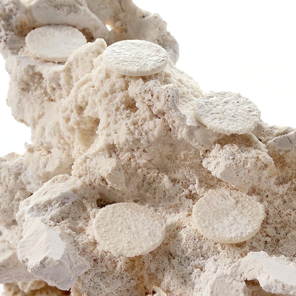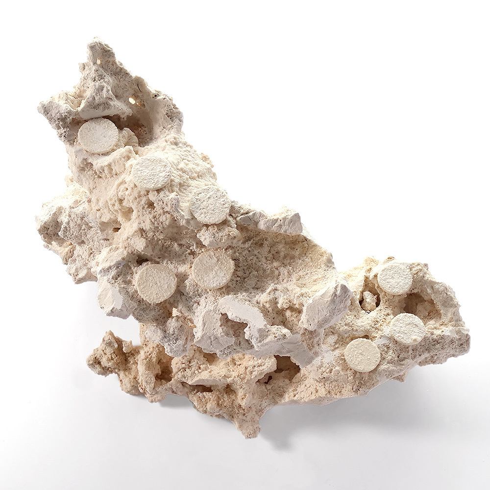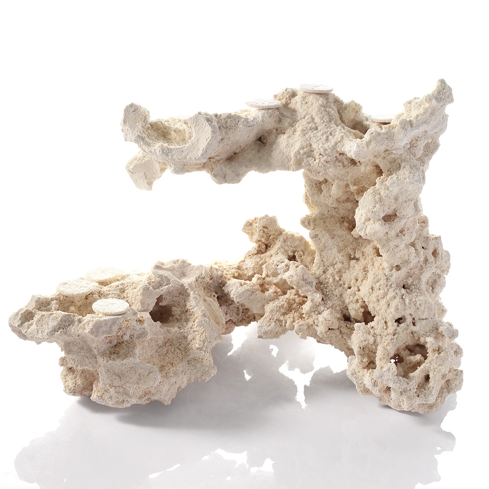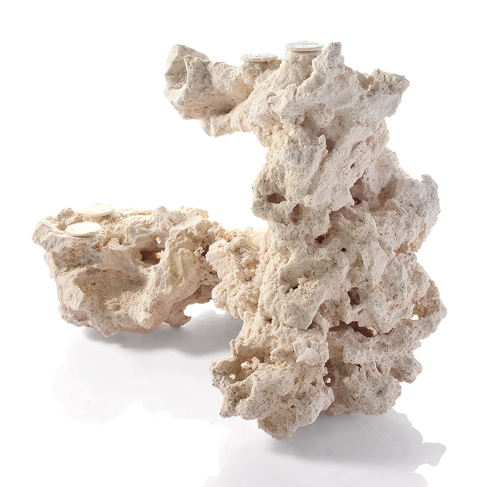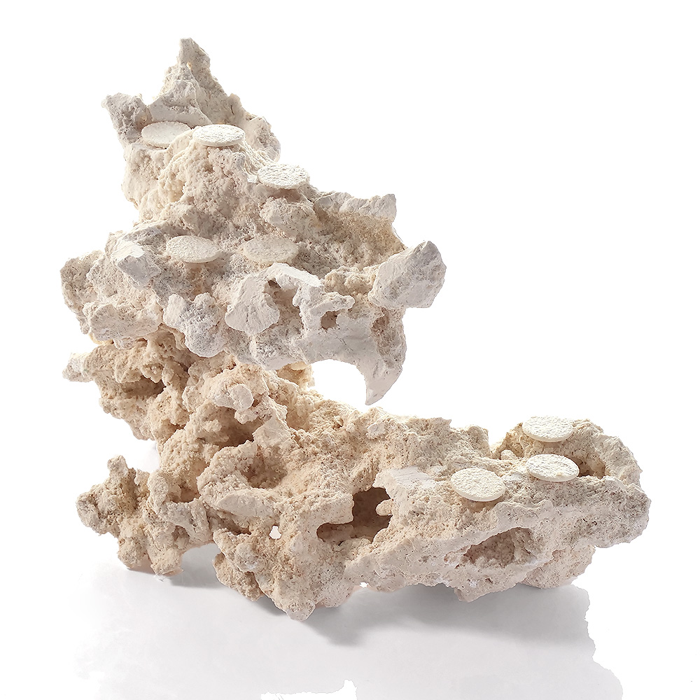| 特長 | ◆マルコロックとは?◆ ●フロリダ半島の陸地で採掘された、クリーンで上質なアラゴナイト石灰岩です。 ●一般的な石灰岩と比べて空隙が多く、多孔質な構造を保っています。 ●従来のライブロックのようなウミケムシやシャコ、カニなど予期せぬ生物の持ち込みがありません。 【フラグベース】 ●マルコロックを素材として組み上げたフラグベースロックです。 ●石材用シアノアクリレート系接着剤を使用し、強固に接着されています。 ●専用のポリカーボネート製サンドコーティングプラグがセットされています。 ●ロック内にサンドコーティングプラグ固定用のシリコン注入済み。プラグの抜き差しが容易に行えます。 【サンドコーティングプラグ】 ●従来のプレート部の厚みによる不自然な段差を解消する超薄型フラットプレートを採用しました。 ●ライブロックやマルコロックの自然な穴を利用できるピンワークストッパー仕様です。 ●プラグ本体は割れたり折れたりしにくいポリカーボネイト製です。 ●プレート表面をマルコロックと同じパウダーサンドでコーティングしたことにより、サンゴの接着性とベースとの一体感を高めています。 |