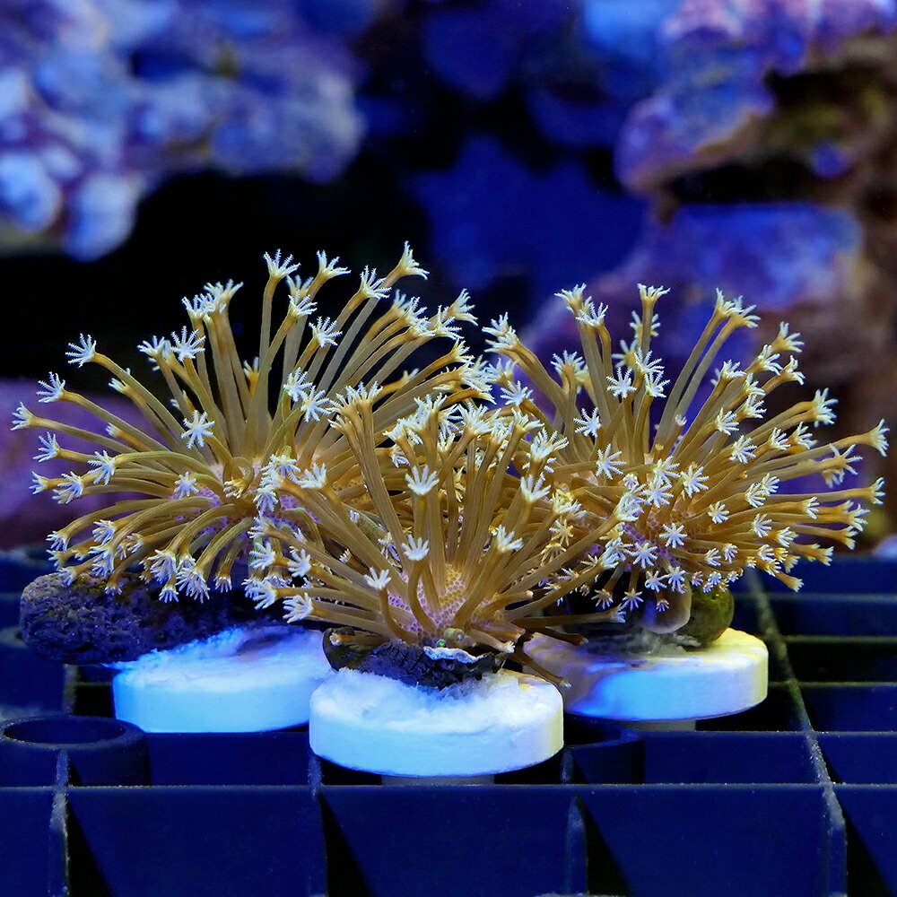 | 飼育要件 | 温度 → 24度前後 照明 → 中~強(60cm水槽で蛍光灯20W4灯またはメタルハライドランプ150W―青・白系) 水流 → 中(ポリプがたなびく程度) 餌 → 不要 水質 → 通常ろ過で可 ※…飼育環境は一例です。 必ずしもこの環境下であれば飼育できることを確約するものではございません。 |