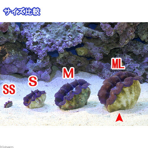 | 飼育要件 | 殻長 → 15cm 温度 → 24度前後 照明 → 強(60cm水槽で蛍光灯20W4灯以上またはまたはメタルハライドランプ150W以上―青・白系) 水流 → 強(多方向からランダムに) 餌 → 不要 水質 → 硝酸塩がほぼ検出されない清浄な水・カルシウム他微量元素の添加が必要 ※…飼育環境は一例です。 必ずしもこの環境下であれば飼育できることを確約するものではございません。 |